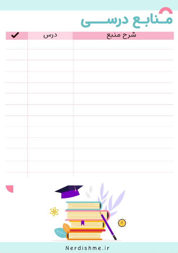 بعضی استادها دوست دارن با معرفی کردن کلی کتاب و جزوه و فیلم آموزشی مختلف به ما سرگیجه بدن! اما اصلا نگران نباش. همه ی منابع رو یکجا کنار هم بنویس و هیچ وقت فراموش نکن که چی رو بخونی.
