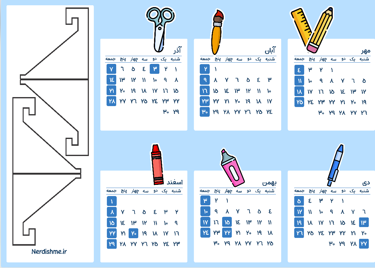 ✅ طراحی خلاقانه با استفاده از رنگهای متفاوت برای ماههای مختلف: این موضوع نهتنها باعث جذابیت بصری میشه، بلکه پیدا کردن تاریخها و مناسبتها رو هم راحتتر میکنه.