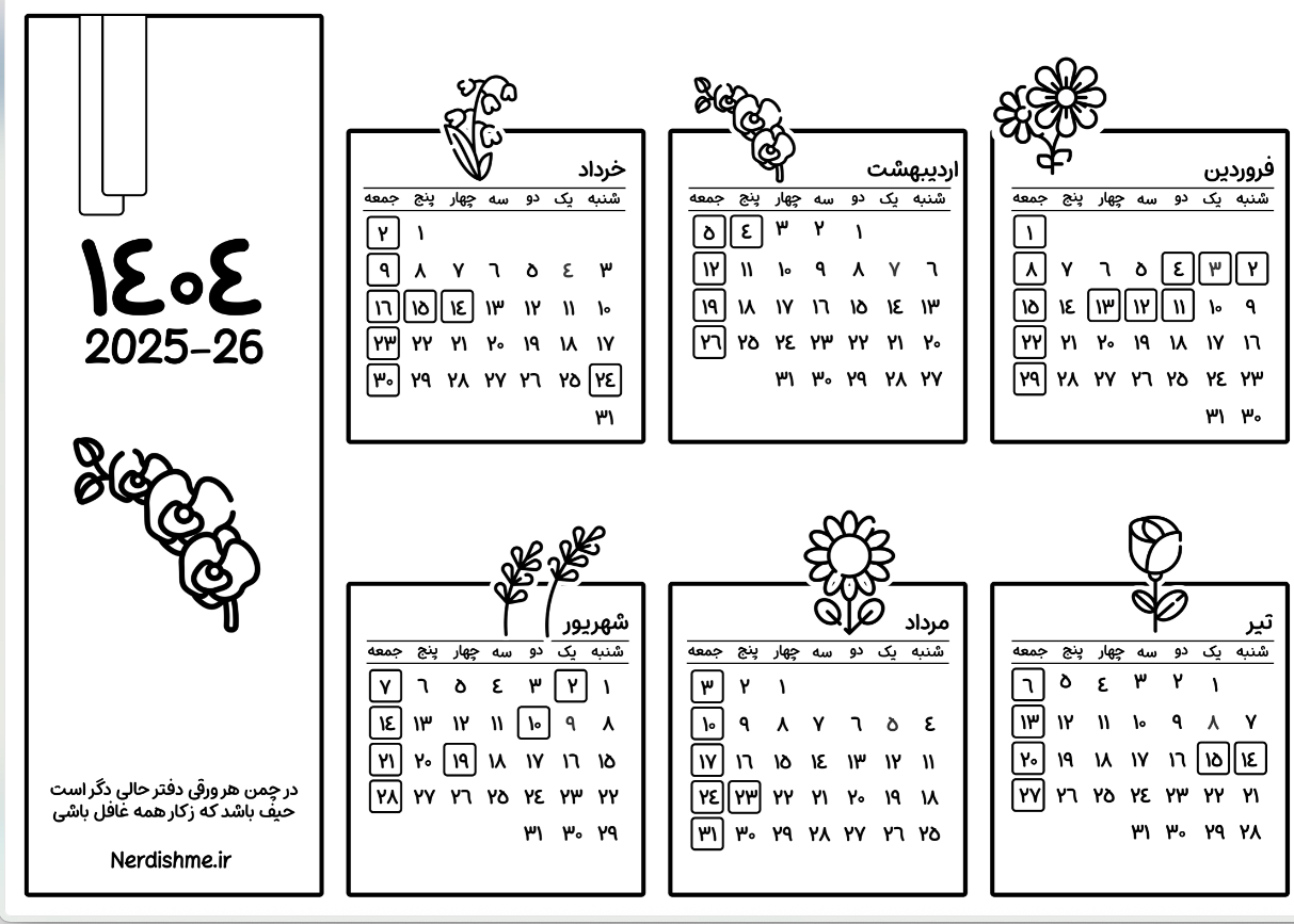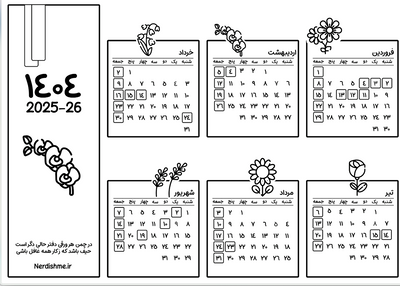 دانلود تقویم شمسی 1404 رنگی و سیاه و سفید | برای شروع سالی منظم و پربار
