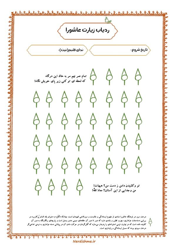 خوندن زیارت عاشورا در ایام محرم خیلی توصیه شده. با این ردیاب یک چله ی زیارت عاشورا بگیر و خودت رو به امام حسین (ع) نزدیکتر کن. برای این ردیاب از آیکن درخت سرو استفاده کردیم که در فرهنگ عاشورا نماد ایستادگی و مقاومت محسوب میشه!