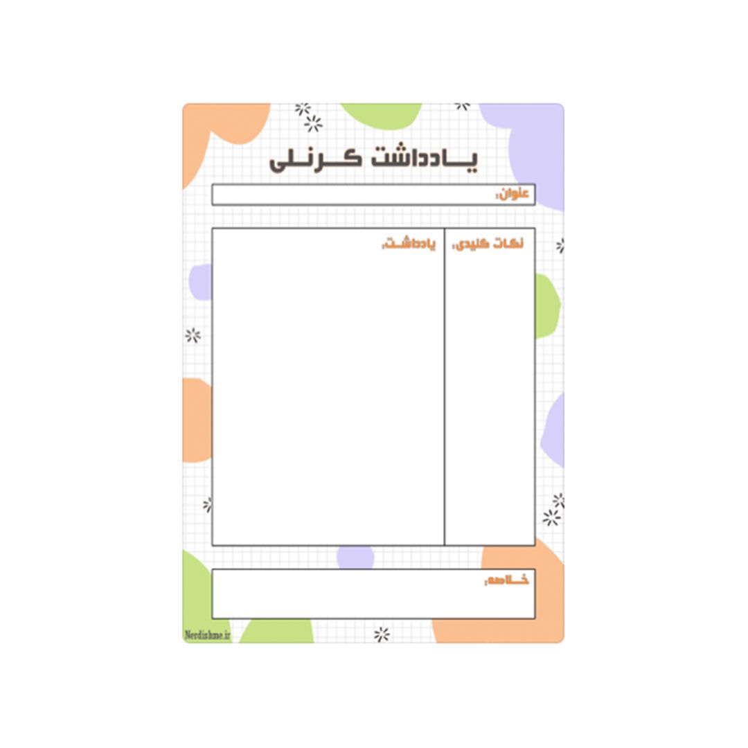 چاپکی یادداشت نویسی به روش کرنل رو میتونی دانلود کنی و بعد به صورت دیجیتال یا چاپی ازش استفاده کنی. اگر دنبال یک روش تاثیرگذار برای خلاصه نویسی درسهات میگردی حتما کرنل رو امتحان کن.