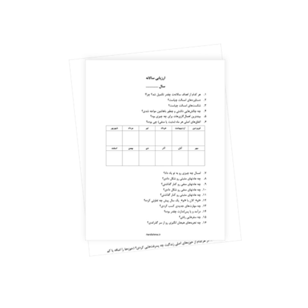 سال داره تموم میشه و بهترین کار اینه که یک جمعبندی از مسیرمون داشته باشیم. این چاپکی شامل ۲۵ سوال کلیدی برای ارزیابی سالانه است که بهت کمک میکنه اتفاقات مهم، موفقیتها، شکستها و رشدهایی که در سال گذشته داشتی رو بررسی کنی. مثلا به این فکر کنی که:
